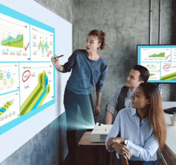 Izkoristite svetlo učinkovitost Panasonicovih laserskih projektorjev v majhnih sejnih sobah. Serija VMZ60, ki proizvaja do 6000 lm iz kompaktnega ohišja je briljantna pod lučmi, se integrira v omrežje 4K in zahteva malo vzdrževanja. Učinkovitost delovnega toka lahko izkoristite tudi z interaktivnim zaslonom. Ta lahek prenosnik vam omogoča pisanje po projekcijah za kasnejšo e-poštno komukacijo.